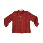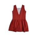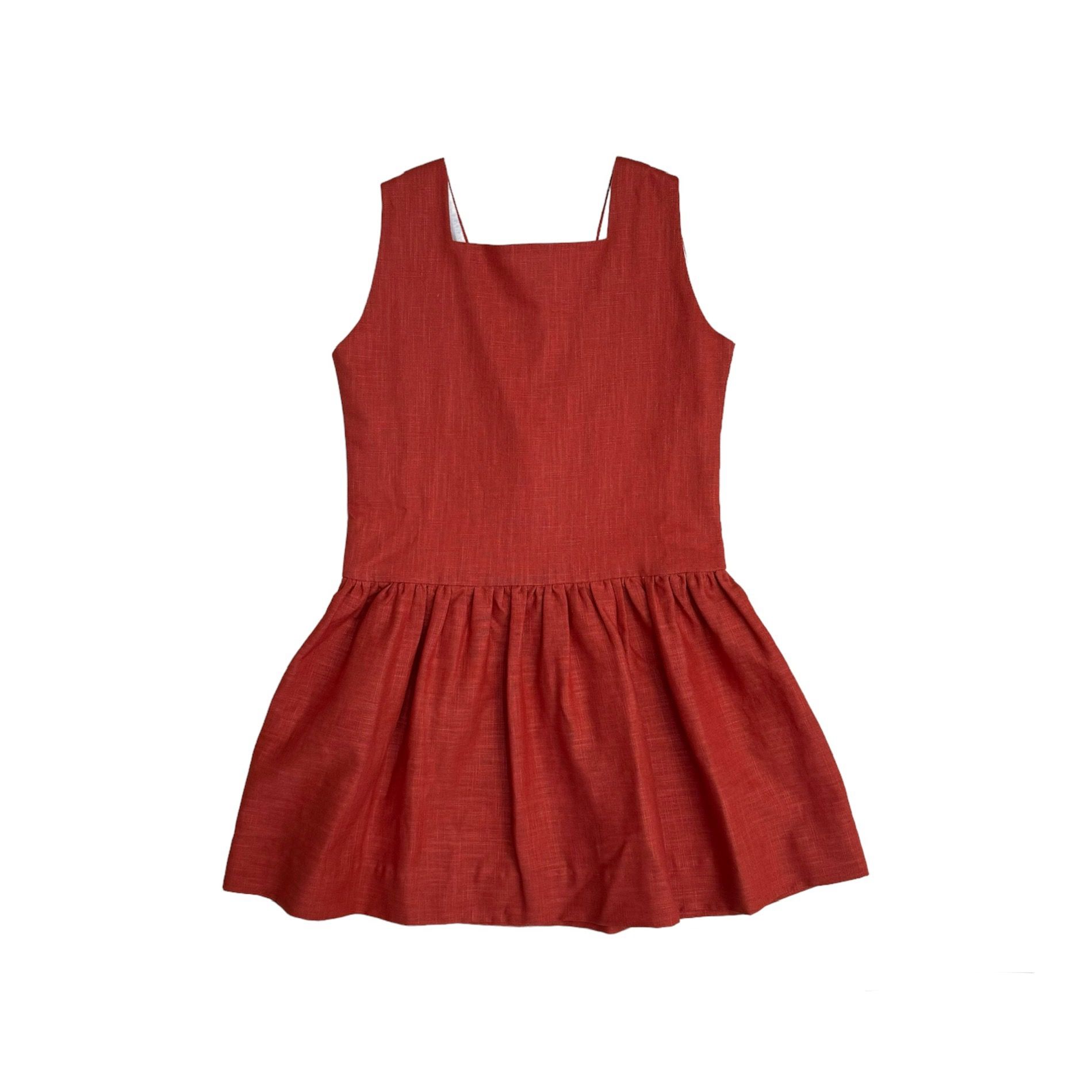 Vestido en hilo teja con talle bajo y escote pico en la espalda.